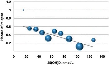 - The likelihood of relapse decreases. An increase of 20 ng/ml reduces relapse risk by 50%.